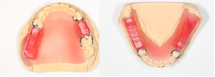 - 保険の義歯では、金属を使用します。保険外になりますが、金属を使用せず、歯茎と同じピンク色の樹脂を使い、目立ちにくくすることもできます。