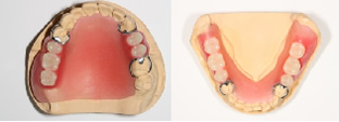 - 保険治療の部分入れ歯は、クラスプ(金属の止め金)が掛かるので少し目立ち、違和感がありますが、安価で修理もしやすいというメリットがあります。