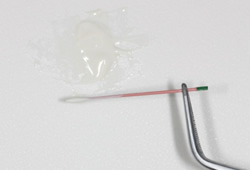 根の中に細菌などが入ってこないよう、根の中を根管充填剤(ゴム製の防腐剤とセメント)で緊密に埋めていきます。