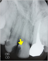 - 過去に根管治療を行っていたが、感染を起こし根の先に大きな膿の袋が出来ている。